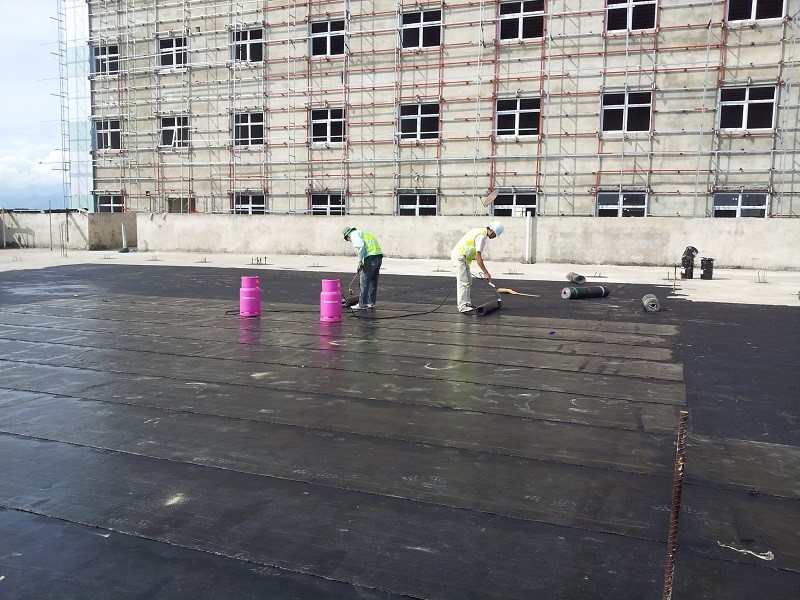 – Sau khi sơn lót khô khoảng 06 giờ ở 300 C (cảm nhận bằng cách sờ lên bề mặt không dính tay), tiến hành dán màng bitum chống thấm.